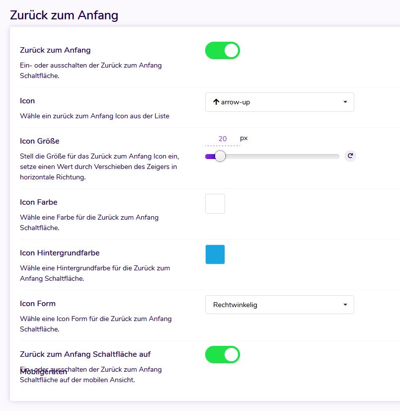This feature allows your users to scroll from the bottom of the page to the top of the page. Activation takes place via the backend..